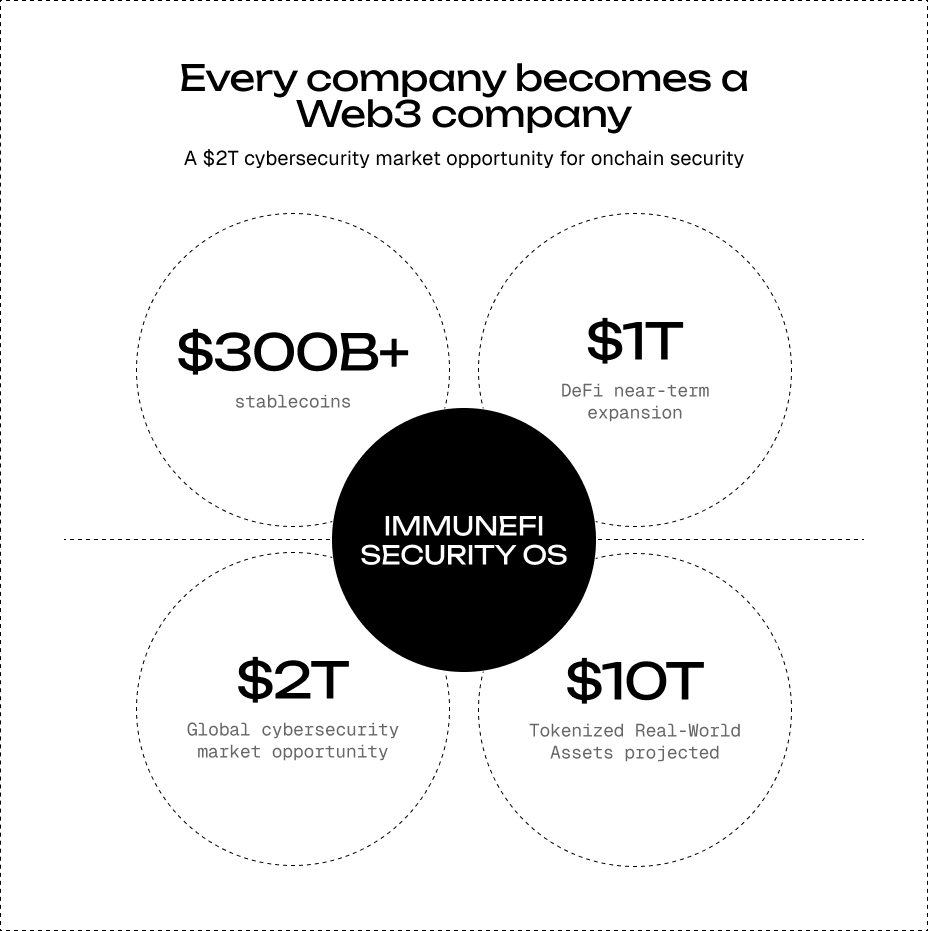 This cycle continues until Immunefi AI safeguards all onchain assets, estimated to reach decatrillions. The Immunefi token becomes a proxy for tracking how large and mature the crypto industry is becoming. It becomes a trust layer for onchain capital: the more the onchain economy expands, the more valuable Immunefi’s Security OS becomes.