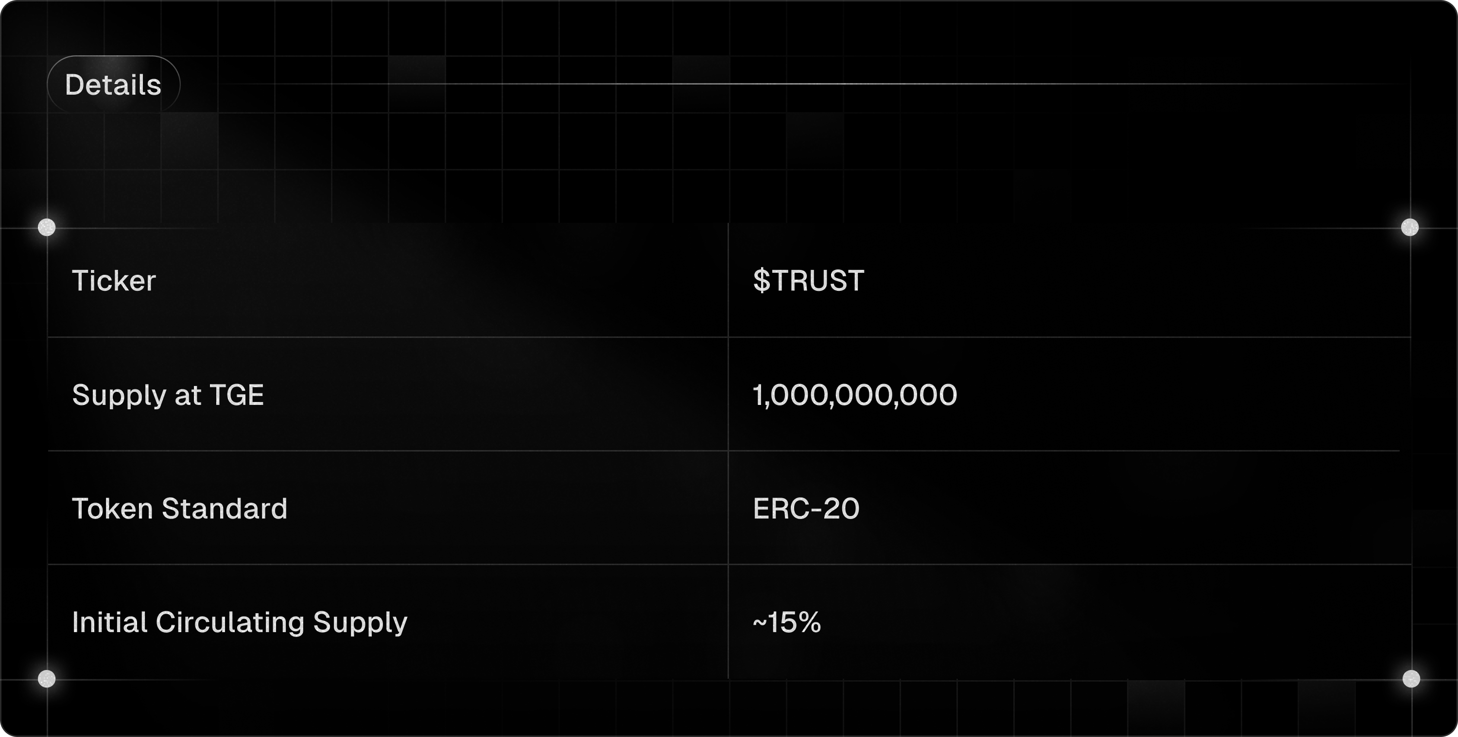 TRUST powers the world’s knowledge economy, securing the Intuition Network while aligning incentives across builders, communities, and AI systems. More than a token, TRUST is the standard by which all information is denominated — the unit of confidence, reputation, and value.